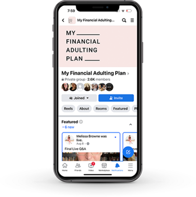 Book a one on one coaching session with Lawsie (an ex-financial advisor) which is only available to those inside the My Financial Adulting Plan (or Momentum Club).