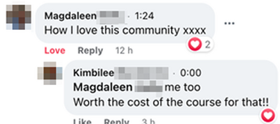 The supportive & inspiring community inside our private Facebook group where you can celebrate your wins, ask your questions, share your learnings and realise you’re not alone.